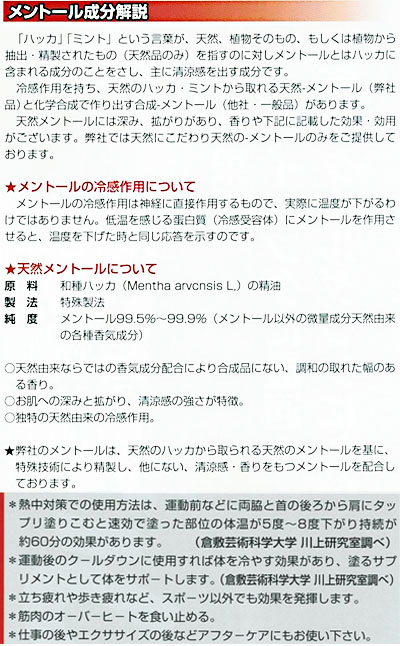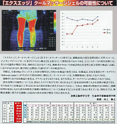 エクスエッジクールマッサージジェル 120g天然メントール効果で、塗った部位の約5度〜8度も体温を下げ、効果が約1時間も続きます。